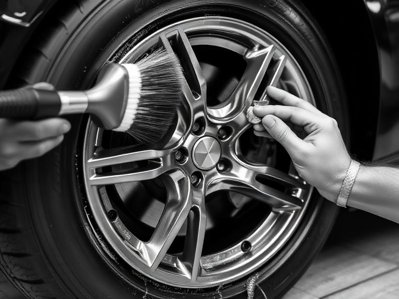 Deep cleaning of wheels, rims, and tires to remove brake dust and restore a clean finish.
